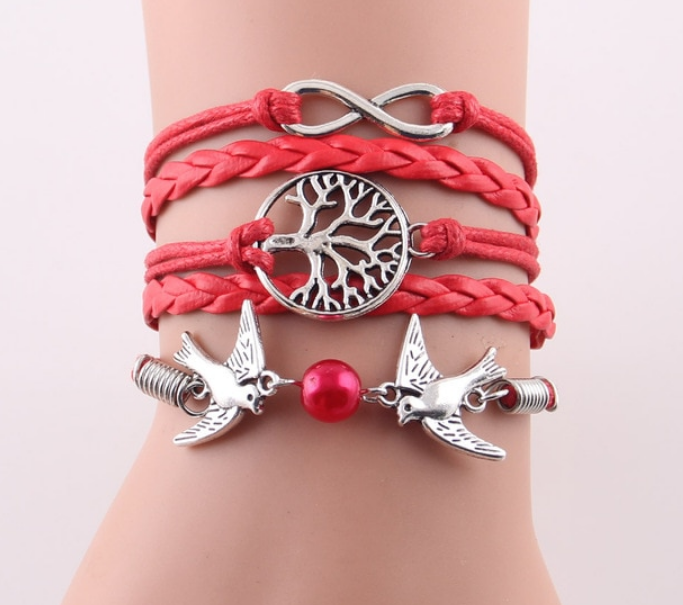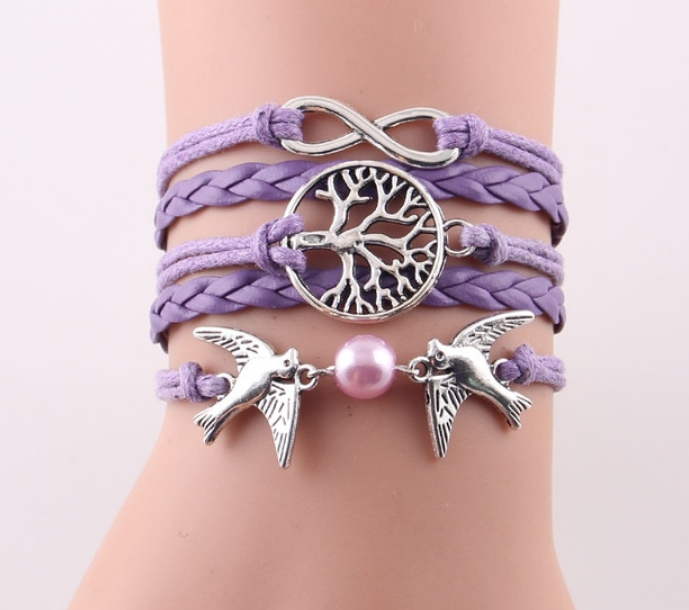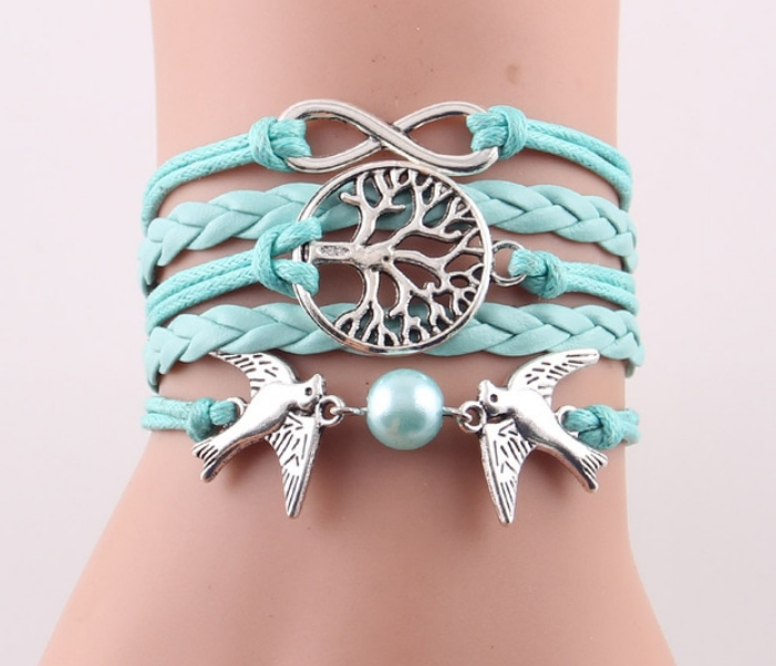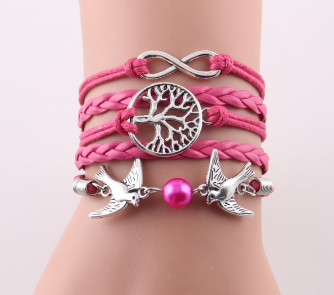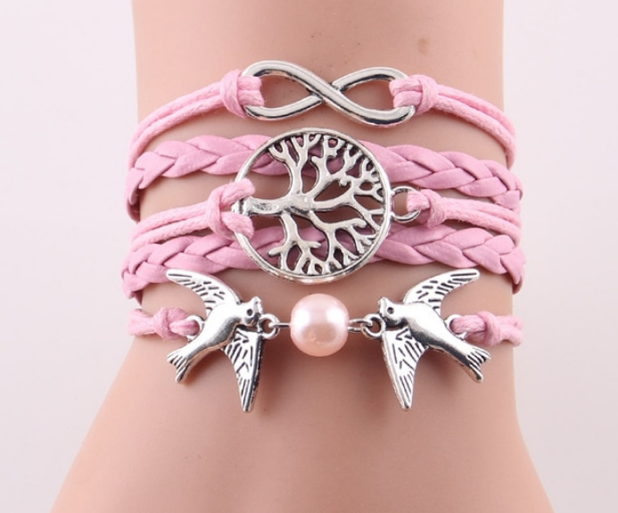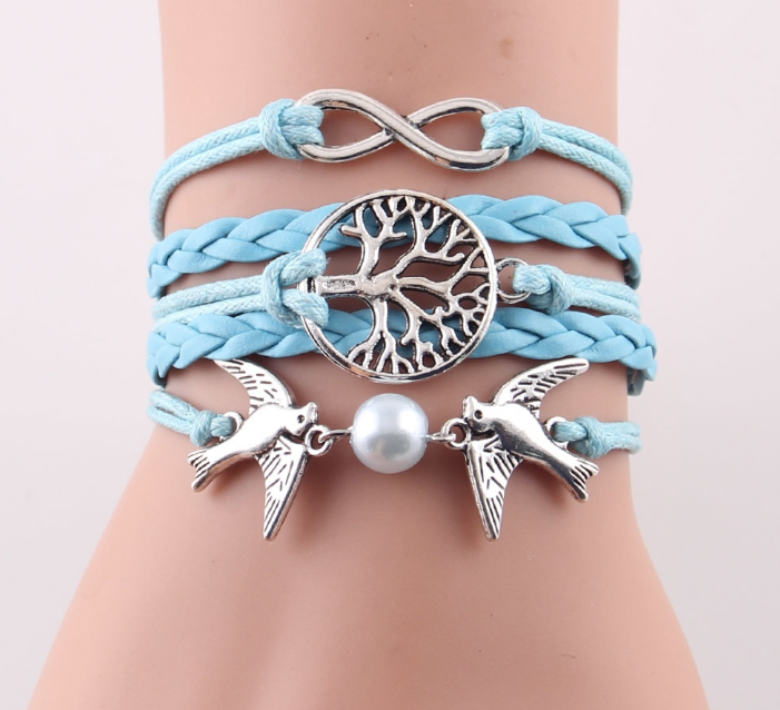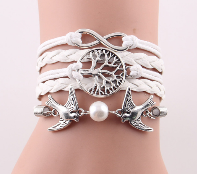 Fashion Infinity Tree flying birds charm Imitation Pearl Leather braid women wrap bracelet Bracelets & Bangles for women jewelry