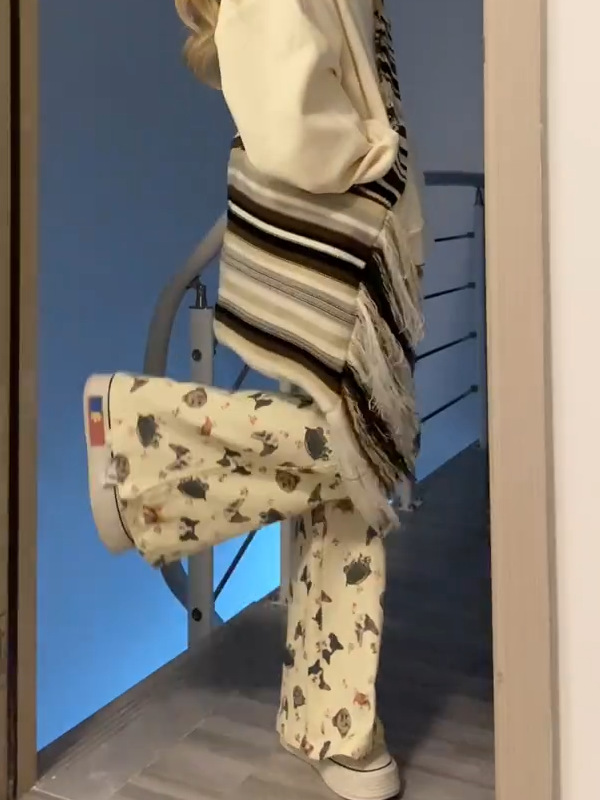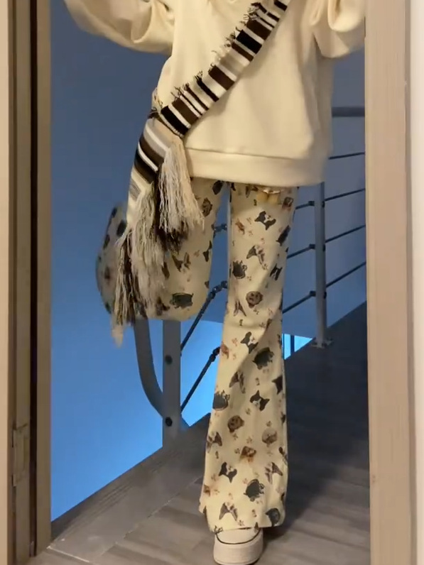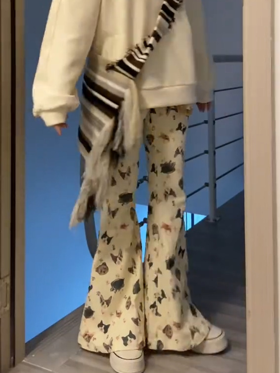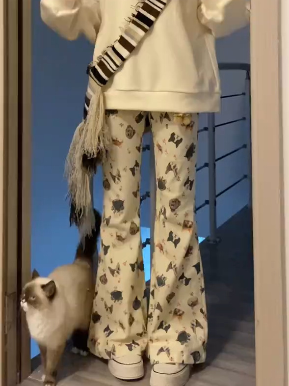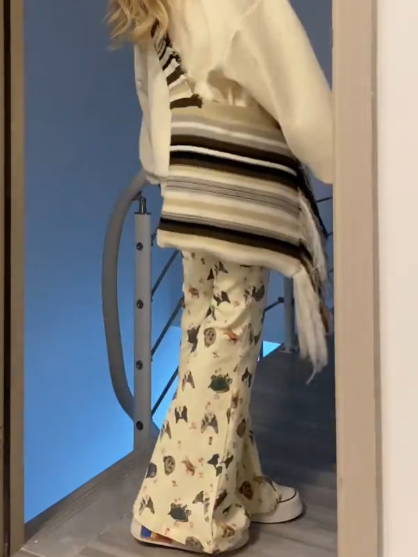 Hand-painted Graffiti Drawstring Printing Bell-bottom Pants Women