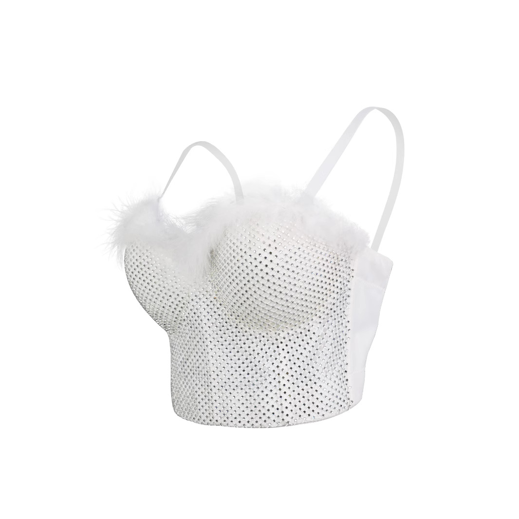 Lace-Up Back Fitted Camisole with Feather and Rhinestone Embellishments