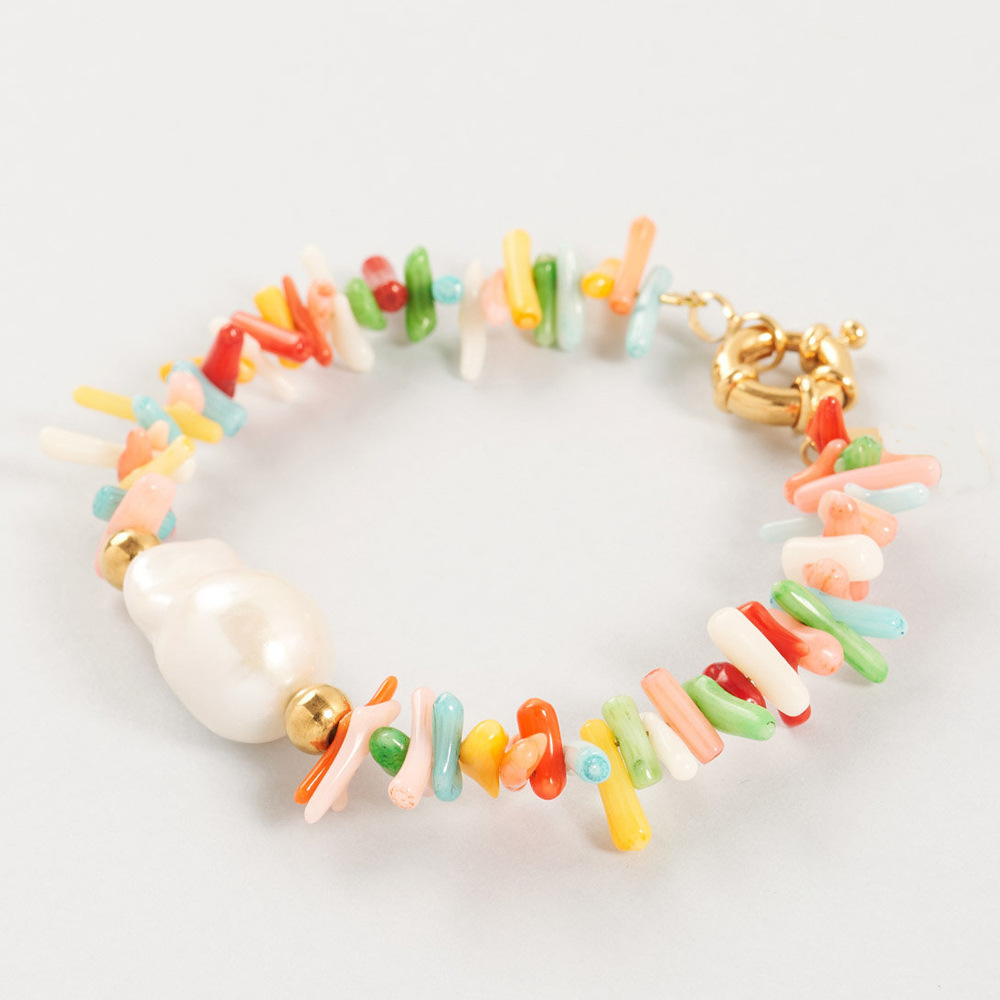 Material: Titanium steel vacuum plated with 18K real gold and freshwater pearls