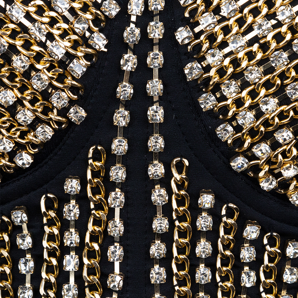 Sexy Waist-Baring Chain Decorated Mini Camisole Bralette with Boning Design