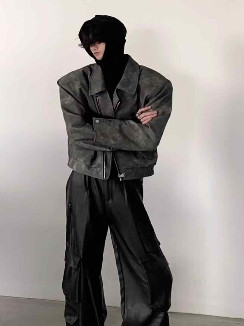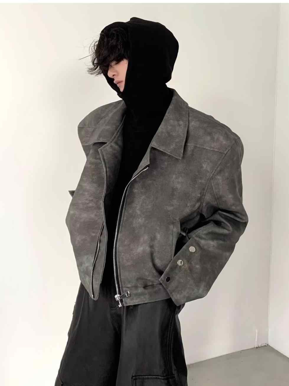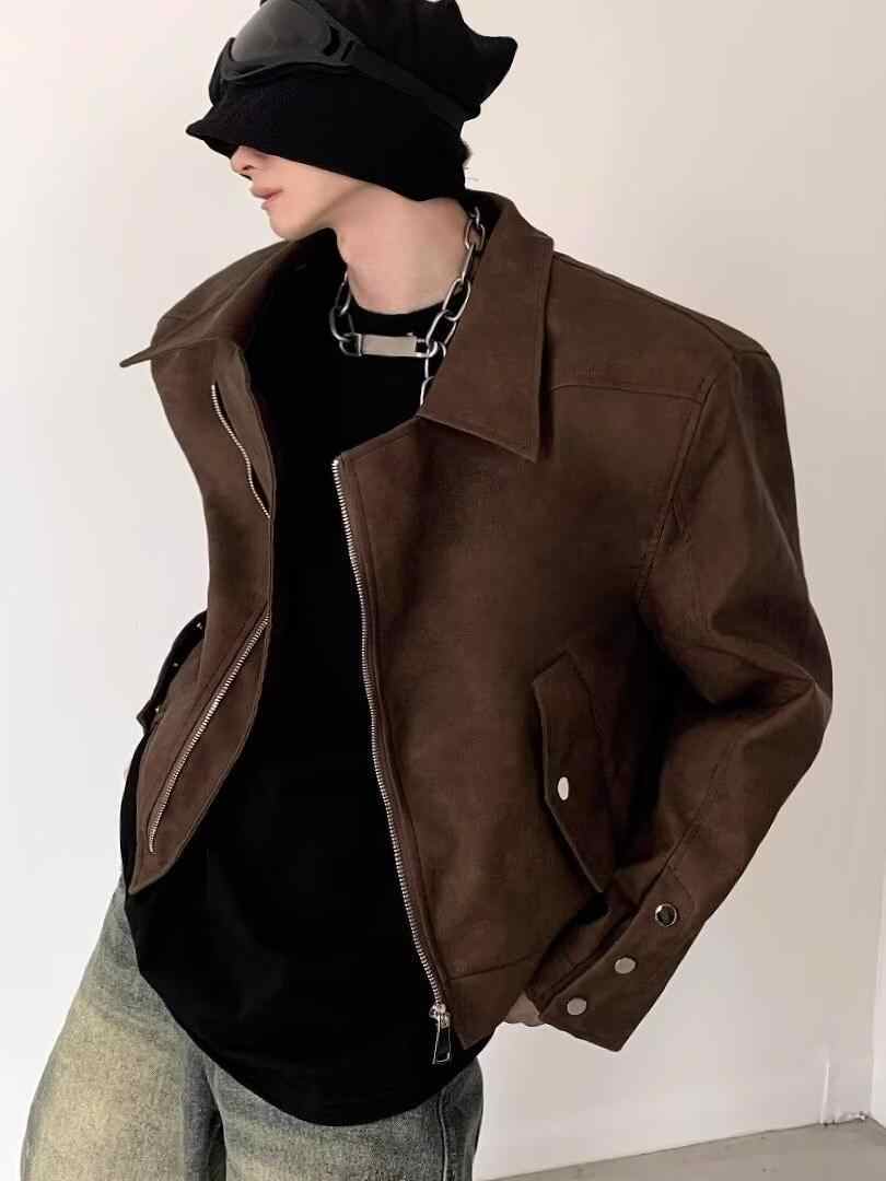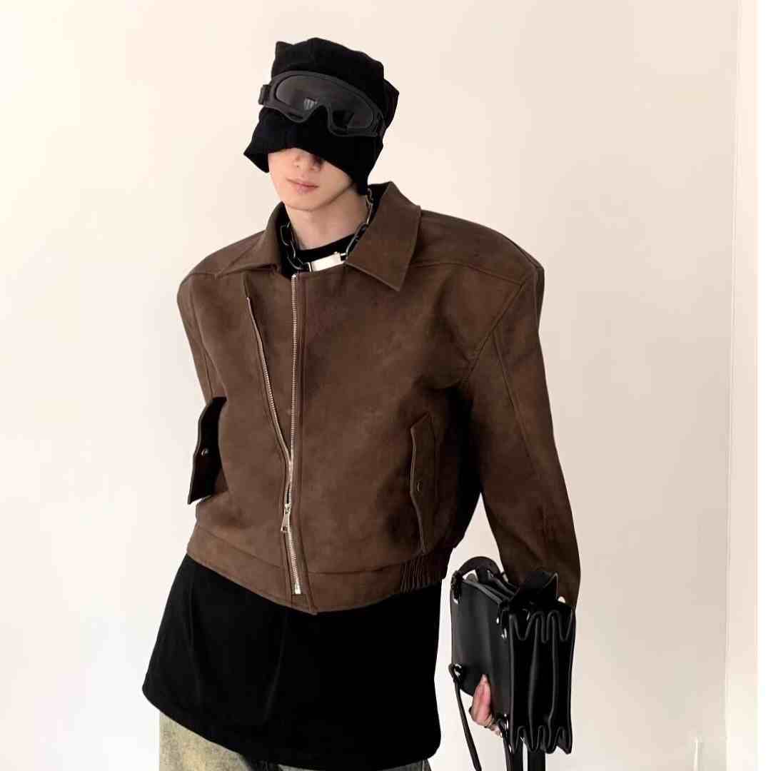 Short Padded Shoulder Brown Leather Coat Men's Pilot Jacket