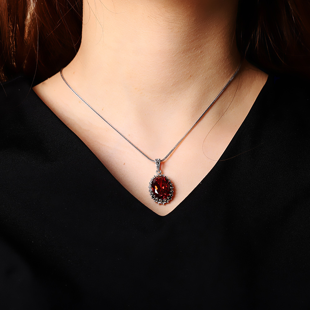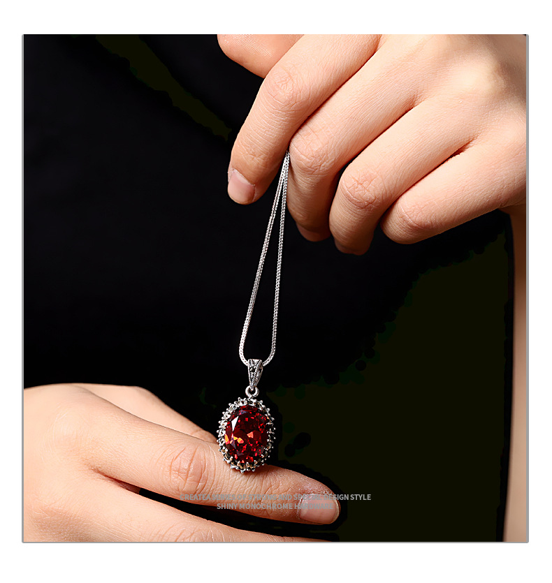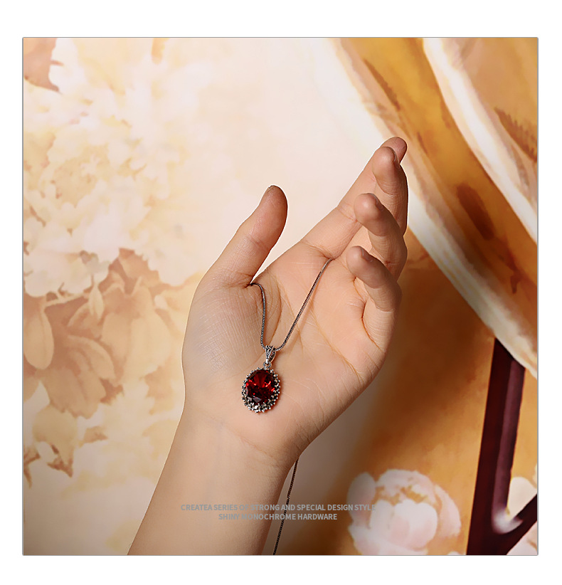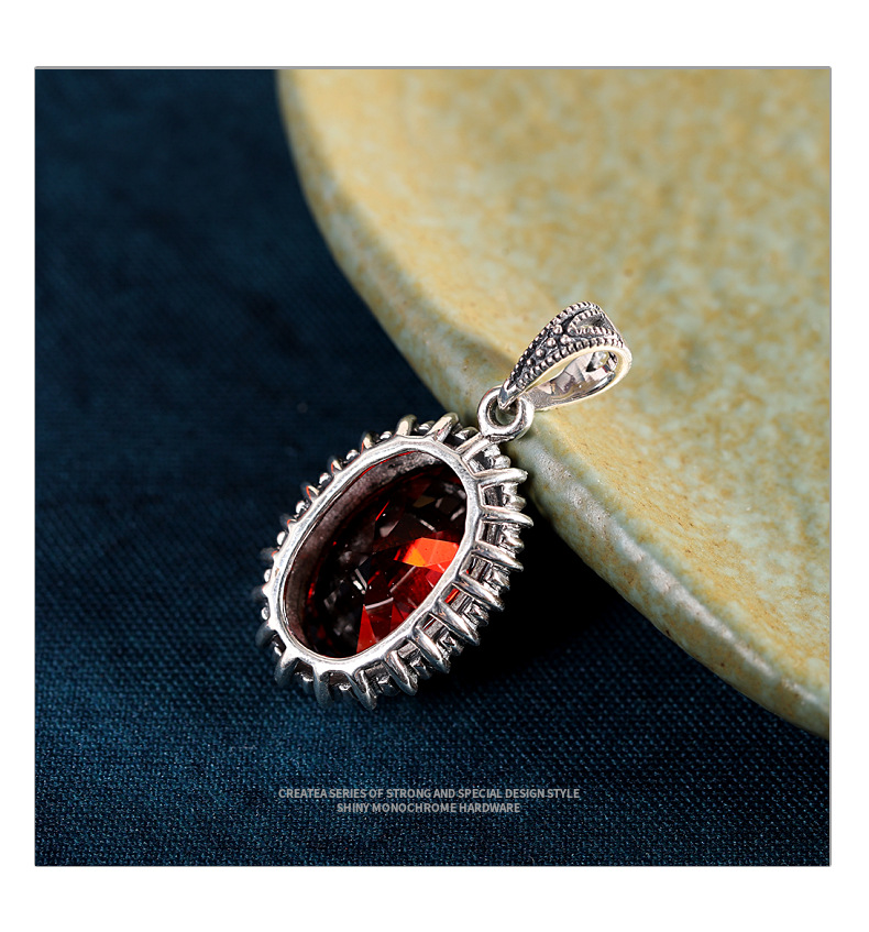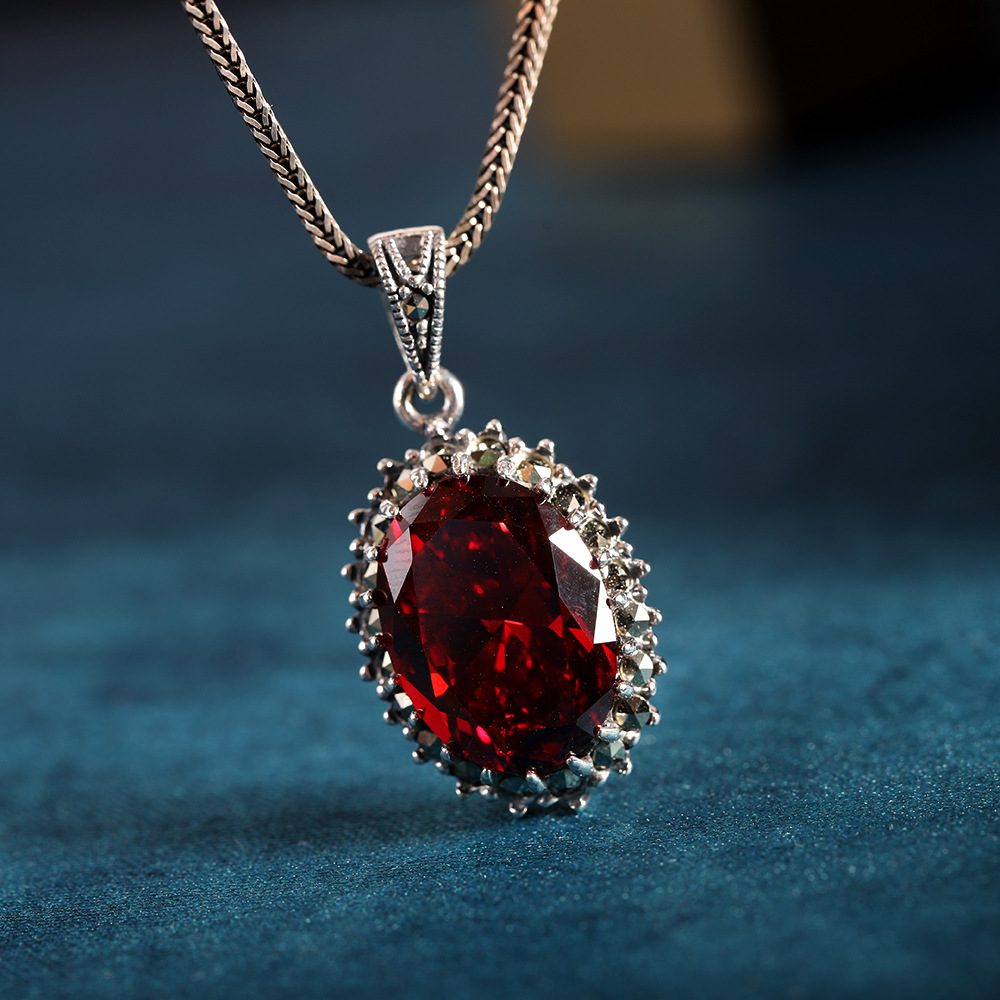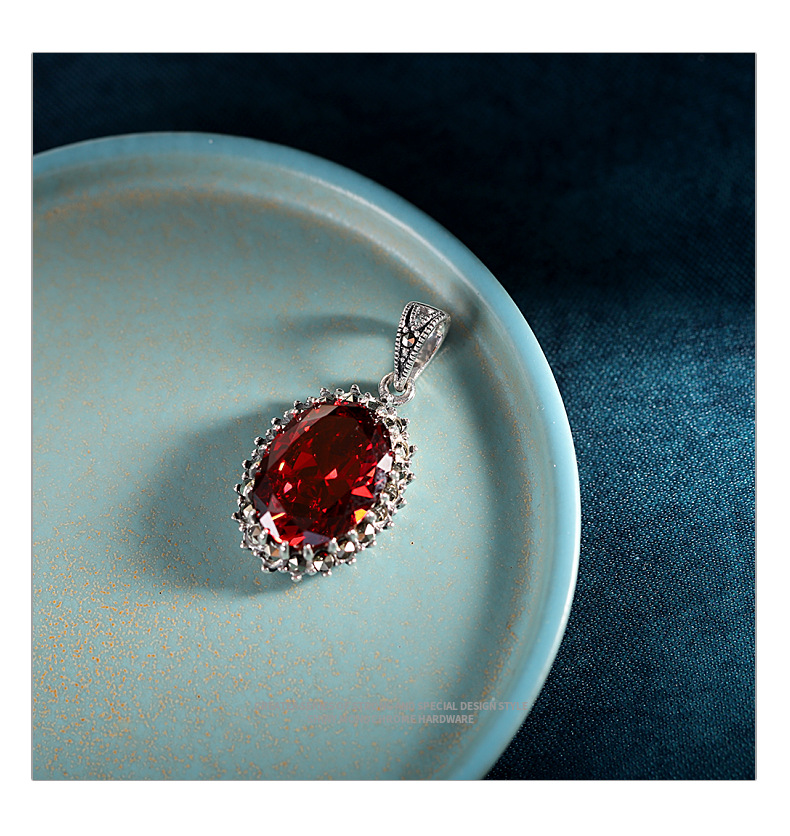Simple Retro Style Cut Face Red Corundum Women's Pendant