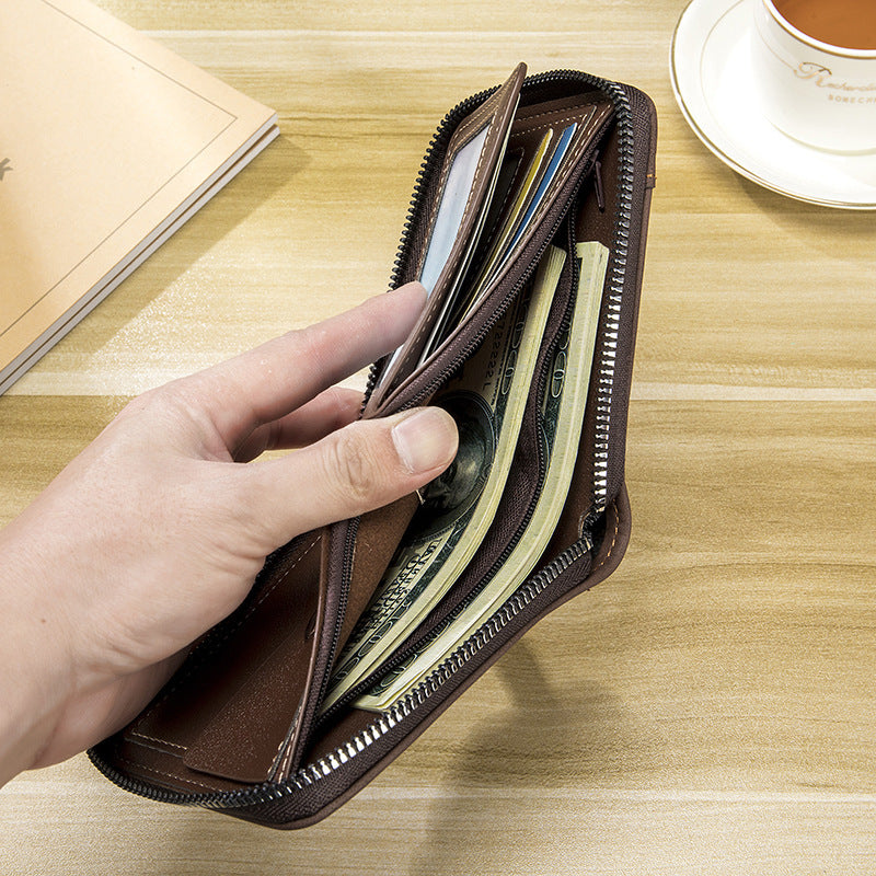 Vintage Two Fold Short Horizontal Zipper Men's Wallet