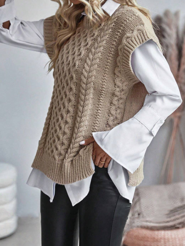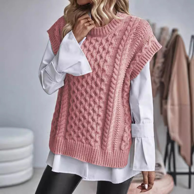 Women's Round Neck Sleeveless Knitwear Twist Thread Sweater